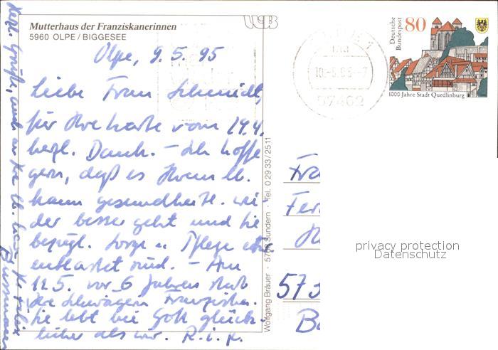 71936311 alte Postkarte Olpe Biggesee Mutterhaus Franziskanerinnen Grabkapelle postalisch gelaufen Erhaltung siehe scans KatCode: 11110005966024