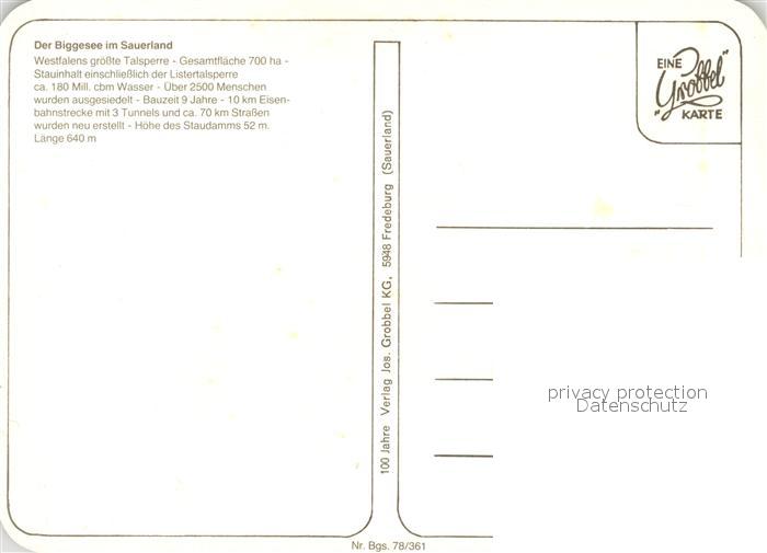 73310822 Olpe Biggesee Westfalens groesste Talsperre Bruecke Fahrgastschiff postalisch nicht gelaufen Erhaltung siehe scans [FriedD77] KatCode: 11110005966024