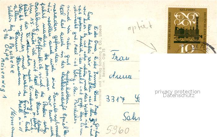 73672661 alte Postkarte Olpe Meschede Pallottinerkloster Am Hexenturm Baeckerfachschule Kurkoelner Platz St Franziskus Schule Listertalsperre An der Steinkuhle Stadtpark postalisch gelaufen Erhaltung siehe scans [WerneD78] KatCode: 11110005958032