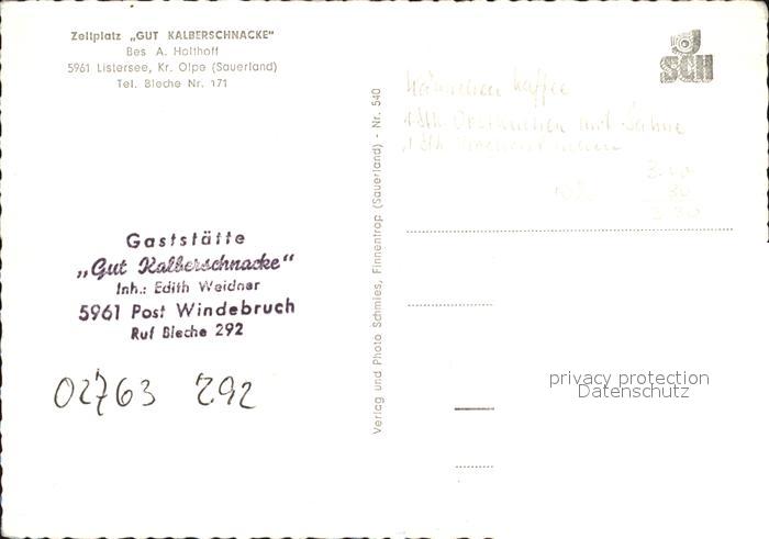 72494420 Olpe Meschede Zeltplatz Gut Kalberschnacke Listersee postalisch nicht gelaufen Erhaltung siehe scans KatCode: 11110005958032