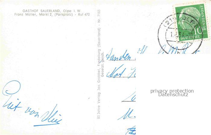 74096835 alte Postkarte Olpe Stadt Gesamtansicht Freibad Gasthof Sauerland Landschaftspanorama Biggetal Bieketal Ebbegebirge postalisch gelaufen Erhaltung siehe scans [FriedD77] KatCode: 11110005966024