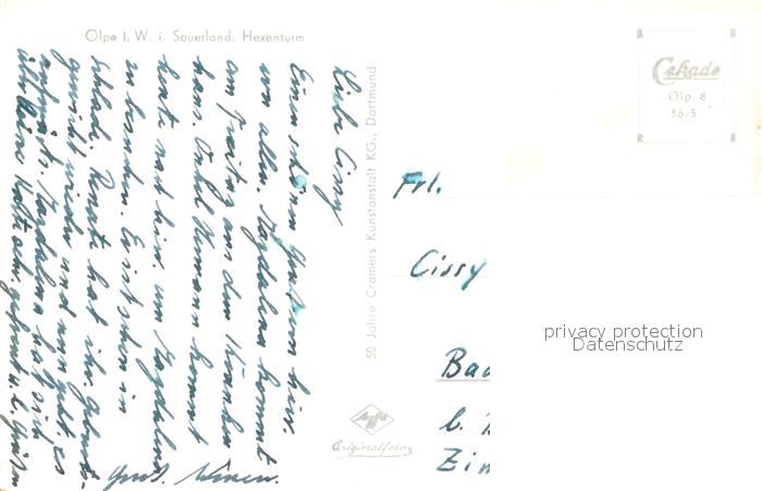 73672659 alte Postkarte Olpe Stadt Hexenturm postalisch gelaufen Erhaltung siehe scans [WerneD78] KatCode: 11110005966024