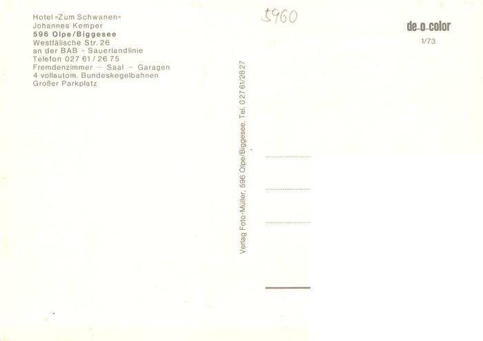 73872613 Olpe Stadt Hotel Zum Schwanen Gaststube Theke Kegelbahnen postalisch nicht gelaufen Erhaltung siehe scans [WerneD78] KatCode: 11110005966024