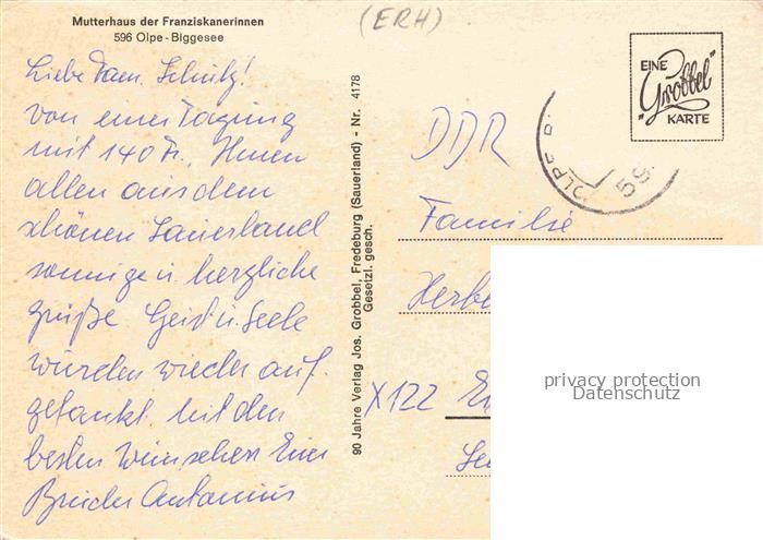 74026256 alte Postkarte Olpe Stadt Mutterhaus der Franziskanerinnen postalisch gelaufen Erhaltung siehe scans [FriedD77] KatCode: 11110005966024