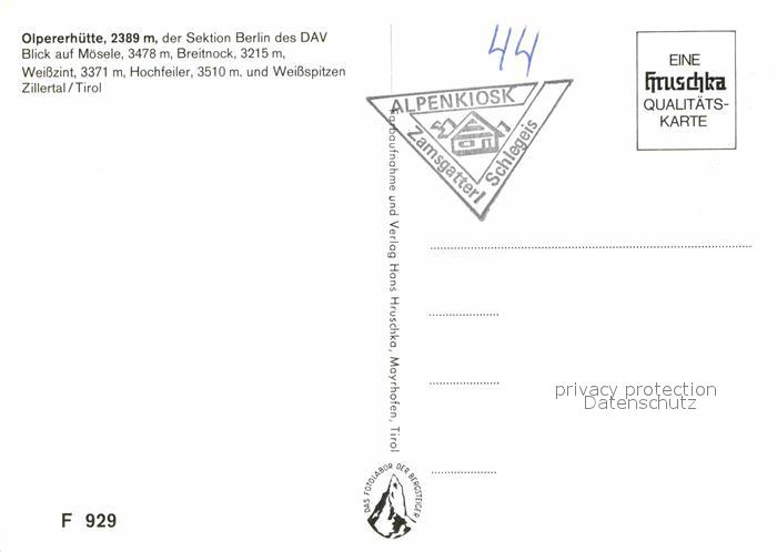 72872478 Olpererhuette Berghaus Bergsee Zillertaler Alpen postalisch nicht gelaufen Erhaltung siehe scans [FriedD77] KatCode: 11390335070926