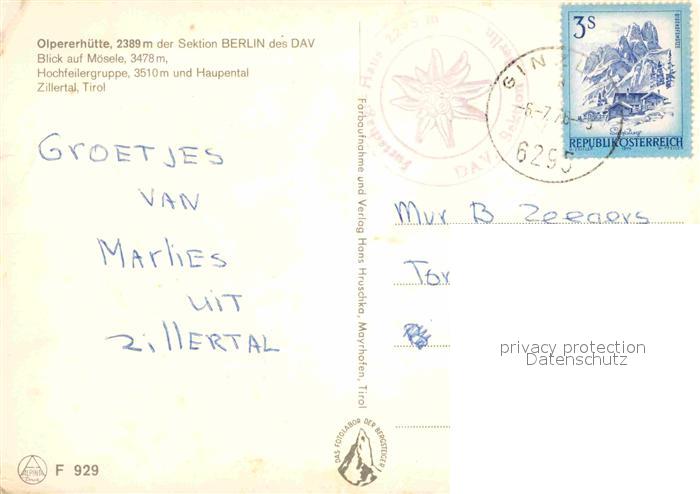 72869690 alte Postkarte Olpererhuette mit Moesele Haupental Zillertal postalisch gelaufen Erhaltung siehe scans [LiesaD40] KatCode: 11390335070926
