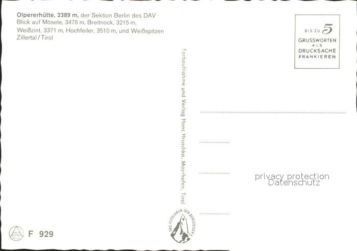 71954004 Olpererhuette Moesele Breinock Weisszint Hochfeiler Weissspitzen postalisch nicht gelaufen Erhaltung siehe scans KatCode: 11390335070926