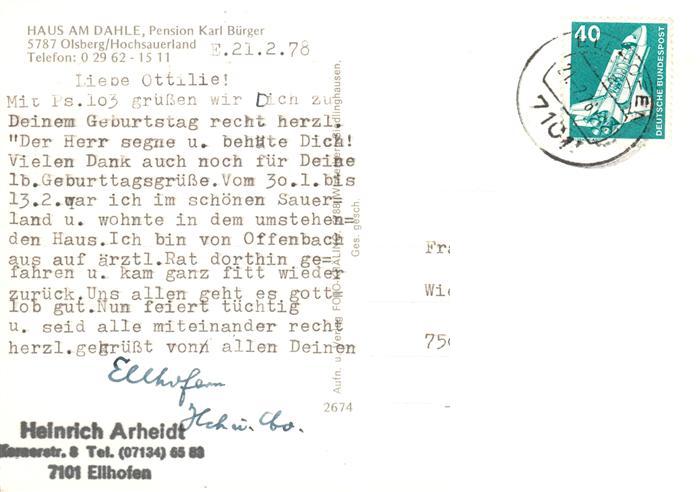 73942508 alte Postkarte Olsberg Sauerland Haus am Dahle Pension postalisch gelaufen Erhaltung siehe scans [WerneD78] KatCode: 11110005958036