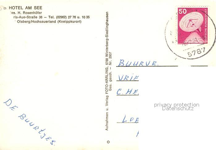 73308139 alte Postkarte Olsberg Sauerland Hotel am See postalisch gelaufen Erhaltung siehe scans [LiesaD40] KatCode: 11110005958036