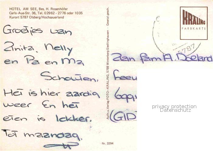 72872172 alte Postkarte Olsberg Sauerland Hotel am See Freibad postalisch gelaufen Erhaltung siehe scans [LiesaD40] KatCode: 11110005958036