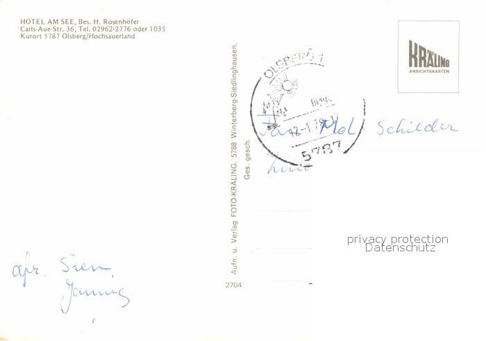 72742968 alte Postkarte Olsberg Sauerland Hotel Am See Rosenhoefer postalisch gelaufen Erhaltung siehe scans [LiesaD40] KatCode: 11110005958036