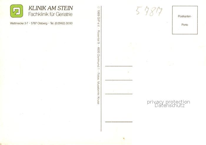 73197179 Olsberg Sauerland Klinik am Stein postalisch nicht gelaufen Erhaltung siehe scans [FriedD77] KatCode: 11110005958036