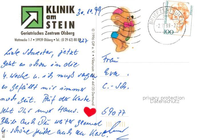 73615144 alte Postkarte Olsberg Sauerland Klinik am Stein postalisch gelaufen Erhaltung siehe scans [WerneD78] KatCode: 11110005958036