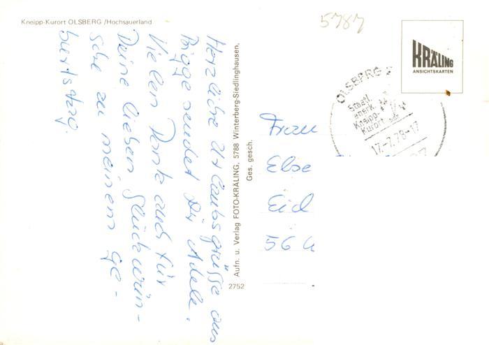 73943460 alte Postkarte Olsberg Sauerland Panorama Park Strassenpartien Hallenbad Freibad postalisch gelaufen Erhaltung siehe scans [WerneD78] KatCode: 11110005958036