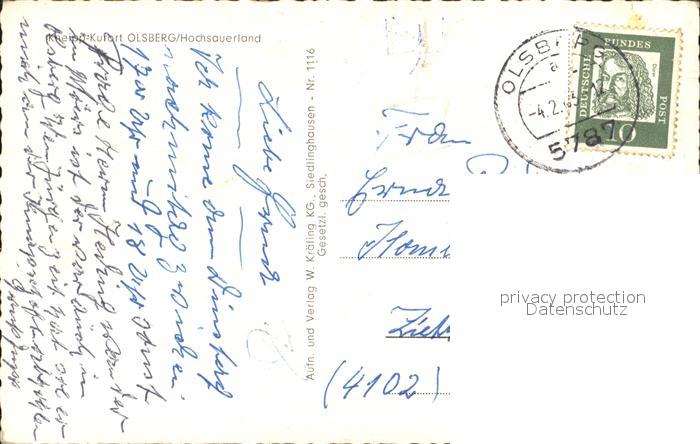 72197776 alte Postkarte Olsberg Sauerland Totalansicht mit OT Gierskopp postalisch gelaufen Erhaltung siehe scans KatCode: 11110005958036