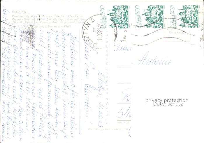 Olsztyn Allenstein Powszechny Dom Towarowy Katedra Wysoka Bramatz Zaklady Opon Samochodowy Stomil Akademia Rolniczo Techniczna postalisch nicht gelaufen Erhaltung siehe scans
