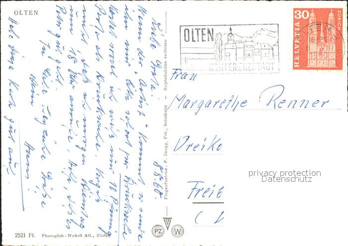11837385 alte Postkarte Olten Fliegeraufnahme postalisch gelaufen Erhaltung siehe scans KatCode: 11470180530450