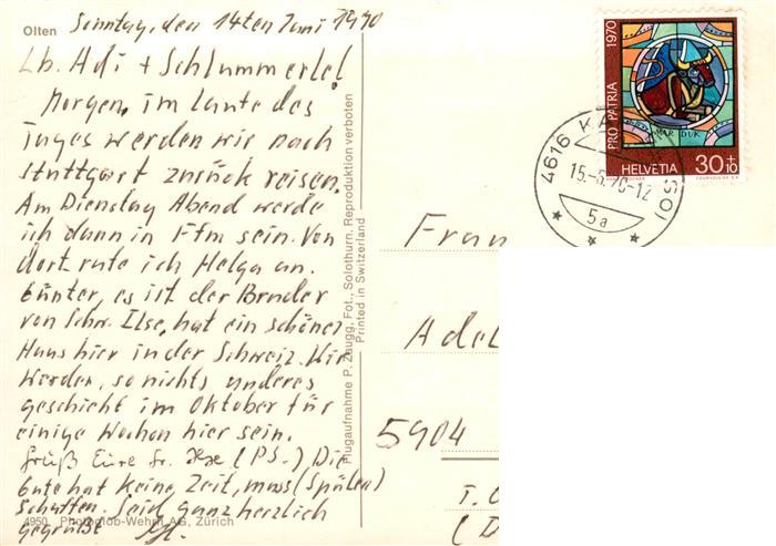 13881766 alte Postkarte Olten SO Fliegeraufnahme postalisch gelaufen Erhaltung siehe scans [FriedD77] KatCode: 11470180530450