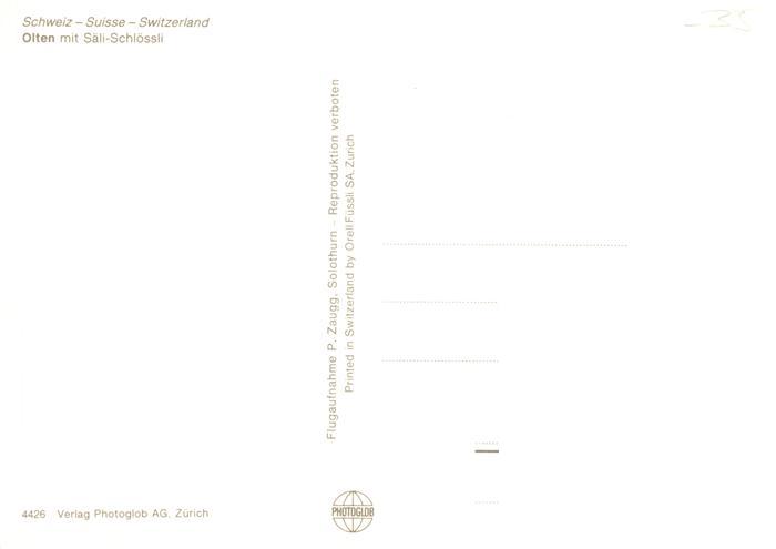 13945275 Olten SO Fliegeraufnahme mit Saeli Schloessli postalisch nicht gelaufen Erhaltung siehe scans [WerneD78] KatCode: 11470180530450