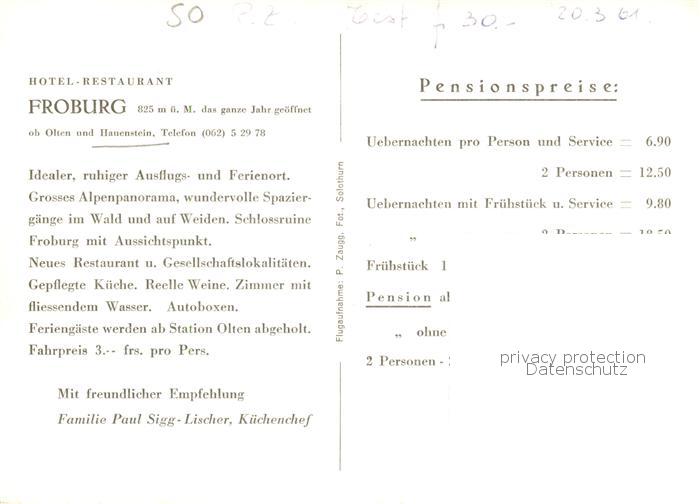 13798968 Olten SO Hotel Restaurant Froburg Fliegeraufnahme postalisch nicht gelaufen Werbekarte (keine Postkarte) Erhaltung siehe scans [FriedD77] KatCode: 11470180530450