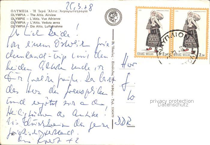 old postcard Olympia Griechenland Die Altis Fliegeraufnahme postalisch gelaufen Erhaltung siehe scans