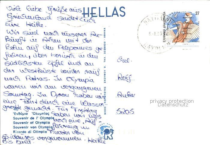old postcard Olympia Griechenland Ruine postalisch gelaufen Erhaltung siehe scans