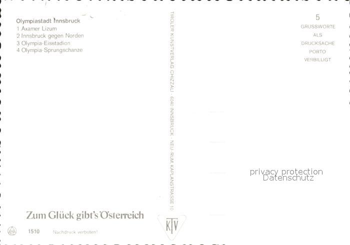 Olympia Innsbruck Axamer Lizum Olympia-Eisstation Sprungschanze postalisch nicht gelaufen Erhaltung siehe scans