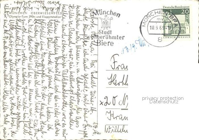 alte Postkarte Olympia Muenchen Oberwiesenfeld Olympia-Turm postalisch gelaufen Erhaltung siehe scans