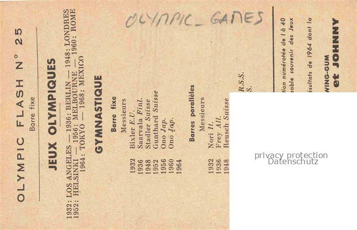 Olympia Olympic Games Gymnastique Los Angeles Berlin Rome
