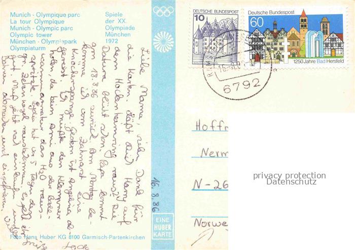 74136547 alte Postkarte OLYMPIA Olympic Games Muenchen la Tour Turm postalisch gelaufen Erhaltung siehe scans [SanaeD93] KatCode: 22520000001800