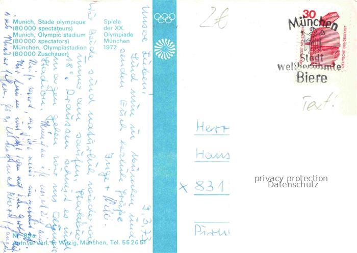 74136555 alte Postkarte OLYMPIA Olympic Games Stadion Muenchen postalisch gelaufen Erhaltung siehe scans [SanaeD93] KatCode: 22520000001800