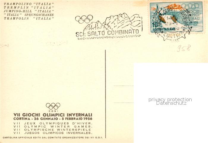 33577547 Olympia Winterspiele Cortina Trampolino Italia postalisch gelaufen Erhaltung siehe scans [PaolaD17] alte Postkarte Paol Katcode 22520000001800