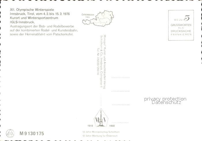 Olympia Winterspiele Innsbruck Bobbahn Skispringen Seilbahn postalisch nicht gelaufen Erhaltung siehe scans