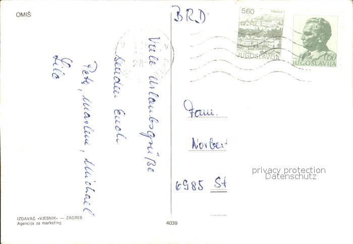 old postcard Omis Panorama Kueste Strand Gebirge postalisch gelaufen Erhaltung siehe scans
