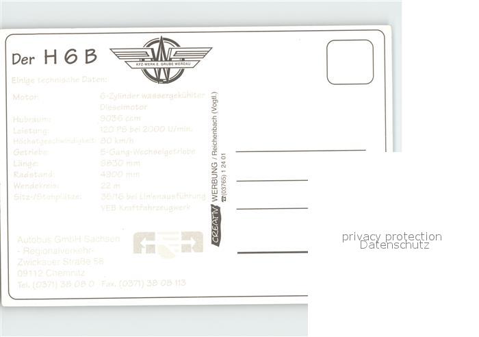 Omnibus Autobus H 6 B Sachsen postalisch nicht gelaufen Erhaltung siehe scans