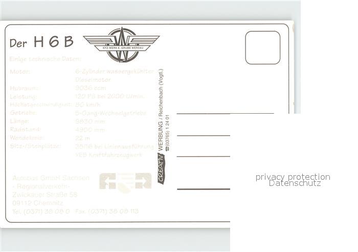 Omnibus Autobus H 6 B Sachsen postalisch nicht gelaufen Erhaltung siehe scans