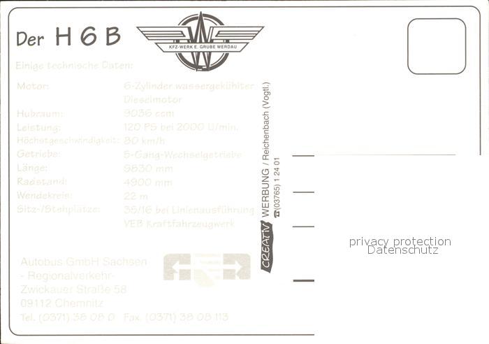 Omnibus Autobus H6B postalisch nicht gelaufen Erhaltung siehe scans