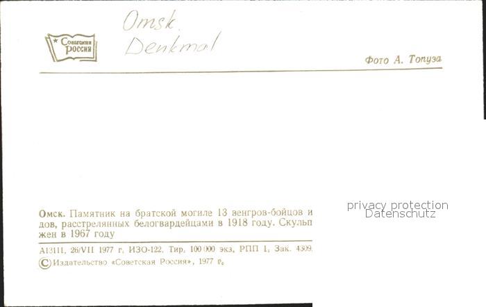 Omsk Denkmal postalisch nicht gelaufen Erhaltung siehe scans