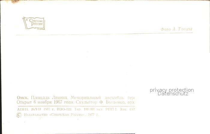 Omsk Memorial postalisch nicht gelaufen Erhaltung siehe scans [NatalD47 kv013box]