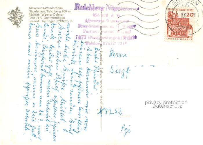 73701184 alte Postkarte Onstmettingen Albvereins Wanderheim Naegelehaus Raichberg Fliegeraufnahme postalisch gelaufen Erhaltung siehe scans [WerneD78] KatCode: 11110008417079