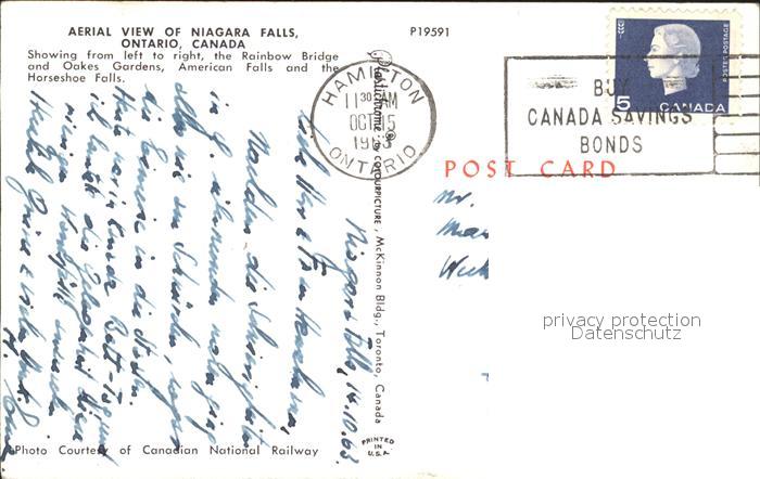 old postcard Ontario Canada Aerial View of Niagara Falls postalisch gelaufen Erhaltung siehe scans