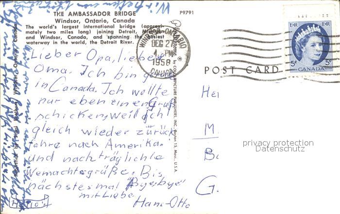 old postcard Ontario Canada Ambassador Bridge postalisch gelaufen