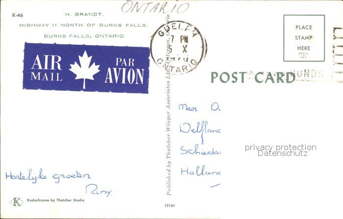 old postcard Ontario Canada Burks Falls postalisch gelaufen Erhaltung siehe scans