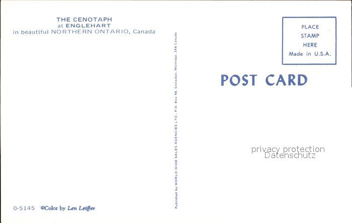 Ontario Canada Cenotaph Englehart postalisch nicht gelaufen Erhaltung siehe scans