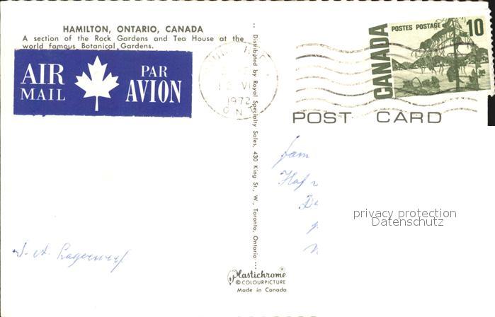old postcard Ontario Canada Hamilton Rock Gardens tea house Botanical gardens postalisch gelaufen Erhaltung siehe scans