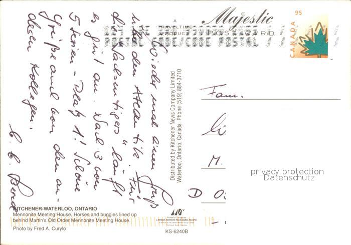 old postcard Ontario Canada Kitchener-Waterloo postalisch gelaufen Erhaltung siehe scans