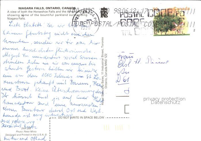 old postcard Ontario Canada Niagara Falls postalisch gelaufen Erhaltung siehe scans