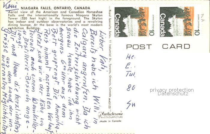 old postcard Ontario Canada Niagara Falls Aerial view postalisch gelaufen Erhaltung siehe scans