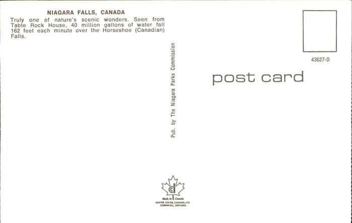 Ontario Canada Niagara Falls Horseshoe Falls postalisch nicht gelaufen Erhaltung siehe scans