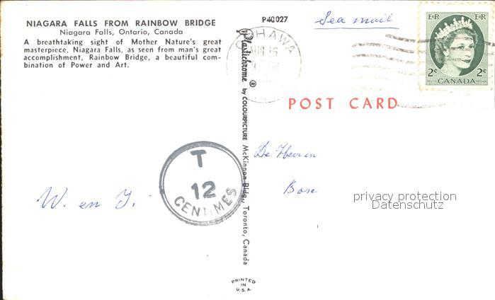 old postcard Ontario Canada Niagara Falls Rainbow Bridge postalisch gelaufen Erhaltung siehe scans